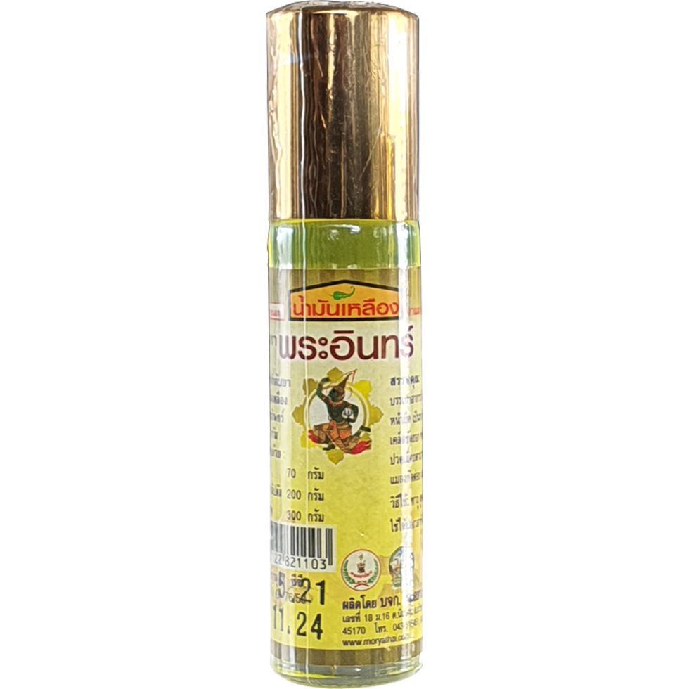 น้ำมันเหลือง ตราพระอินทร์: ใช้ทาผิวหรือสูดดมเพื่อบรรเทาความเหนื่อยล้าและเพิ่มความสดชื่นให้กับร่างกายในช่วงฝนตก