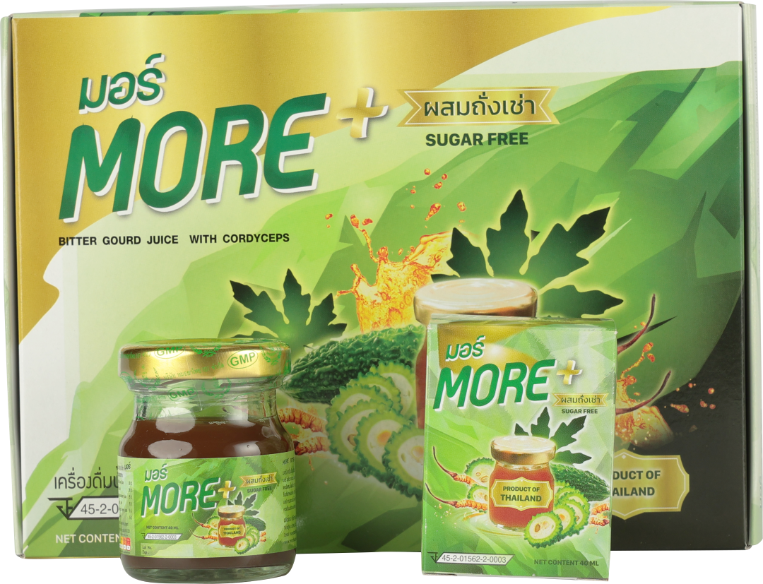 ผลิตภัณฑ์ที่ได้รับความสนใจสูงสุดในงานครั้งนี้คือ “มอร์ น้ำมะระขี้นกผสมถั่งเช่า” เครื่องดื่มสุขภาพสูตรเฉพาะของบริษัท ที่ผสานคุณค่าของสมุนไพรไทยและถั่งเช่าคุณภาพสูงอย่างลงตัว โดดเด่นด้วยรสชาติที่ดื่มง่าย ไม่ขม และมีคุณประโยชน์ช่วยลดการตื่นปัสสาวะกลางคืน ซึ่งเป็นจุดที่ผู้บริโภคชาวจีนให้ความสนใจเป็นพิเศษ (มอร์ที่ส่งขายจีนจะออกแบบใหม่เป็นขวดพลาสติกเพื่อง่ายต่อการขนส่ง)